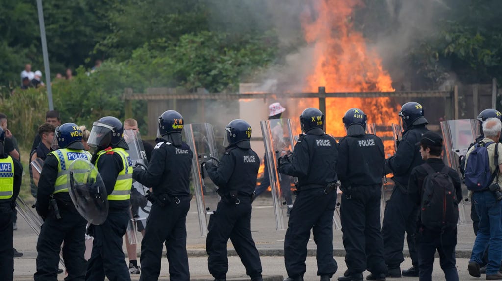 For years, while the mass immigration of Muslims has utterly transformed their country, the overwhelming majority of Brits have stuck to form – keeping a stiff upper lip, queuing politely for buses, and biting their tongues as they watched entire neighborhoods, such as the traditionally cockney East End of London, converted to Muslim enclaves. In the months since October 7, they sat home and sipped their tea while armies of Muslims filled their streets weekend after weekend, screaming their support for anti-Western terrorism and shouting their plans to turn Britain into an Islamic caliphate. Those decent Britishers even tended to stay quiet while the few heroic members of their race who protested these outrages – men like Tommy Robinson and Laurence Fox – were abused, insulted, and unjustly arrested by a police force that has strayed far from the civilized rules of police behavior set down two centuries ago by Sir Robert Peel and has practiced “two-tier policing” – turning a blind eye to actual Muslim violence while imprisoning ethnic Englishmen who dare to criticize that violence online.