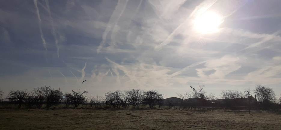 Saturday March Ist, 2025, Lincolnshire, England. The forecast is for clear skies and non stop sunshine all day. But I know different. After 20 years filming the creation of fake clouds, I know exactly what’s coming. If the Met Office says clear sky and sunlight, jet planes will swoop in to lay a barrage of milky white filth. This will expand into a sheet of featureless mist between the sun and the earth. Planet earth, where all life depends on sunlight for existence. The chemtrailers are literally stealing the light from our lives. At 7.30 I go out to feed the horses and take my phone; I’m too tired to bother with a bigger camera. Nevertheless the images captured are an accurate depiction of the shameless geo-engineering that has violated our every spring and summer for the last 20 years. Enjoy!