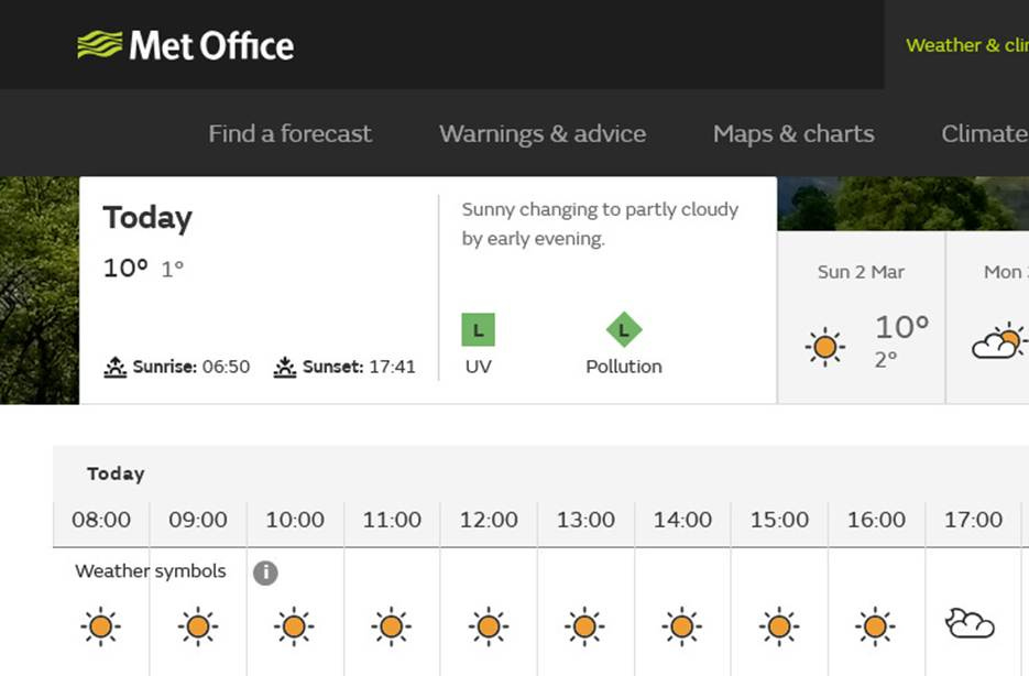March 1st 2025: Met Office forecast for a small village in Lincolnshire: