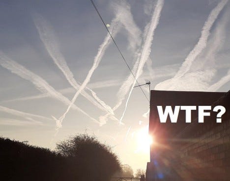 There’s not much else to say, short of screaming to high heaven. As demonstrated during Covid, we are no more than laboratory-rats where the elite are concerned. The experiments happen above our heads -in this case literally. Eight hours of precious sunshine have been wiped out by self-appointed weather gods. Met Office forecast be damned, from 9.30 onwards there was no sunshine. Of course, the Met Office could argue that there never was a cloud in the sky -which is technically true. Coagulated aerosol spray is not cloud. If you have a taste for such ironies, bear in mind that with most state-inflicted curses -migrant invasion; runaway inflation etc- the problem starts because you notice. Where geo-engineering is concerned, few seem to notice anything at all. Readers new to this topic are invited to read more detailed posts with some crucial historical info which are linked below:
