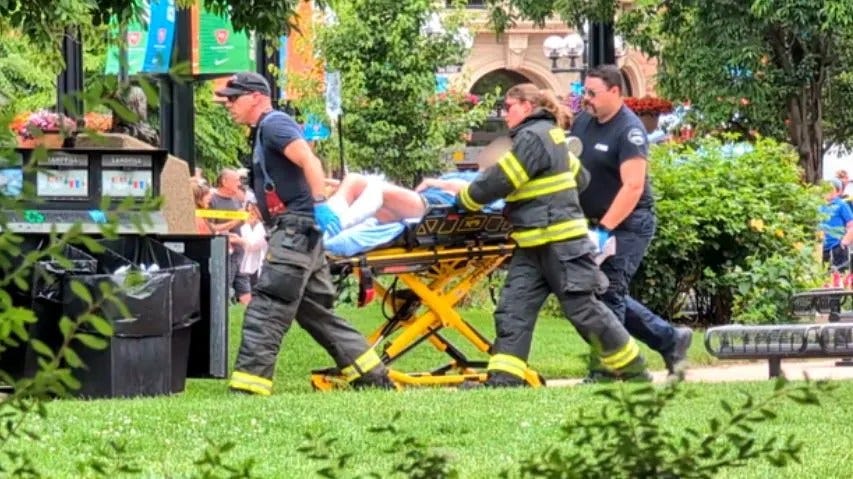 The Boulder police chief is a chap called Stephen Redfearn, formerly the Department's chief LGBTQWERTY liaison. That's the Pride flag flying outside the Boulder courthouse above; as the mysteriously motiveless Molotov man rampages around with his cocktails, apparently undisturbed for a disturbing amount of time. If you want to make it big at NBC News, take out a long meandering confusing four-letter word such as J-E-W-S and replace it with something pithy and impactful like "Gaza-hostage-awareness marchers".