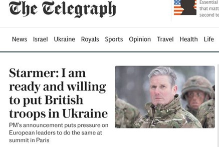 Starmer. naturally, appeared pronto Tonto in the pages of the Daily Telegraph wearing his cammo threads, to announce “I am ready and willing to put British troops in Ukraine.”