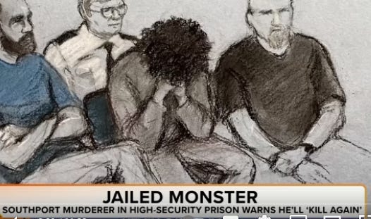 Meanwhile Britain’s official “most dangerous” jailbird, the gurning demon called Axel Rudakubana, has announced he will “kill again” to add to his list of obscene crimes which mysteriously includes no convictions for “terror” offences whatsoever, despite his possession of an Al-Qaeda manual and home-made Ricin.