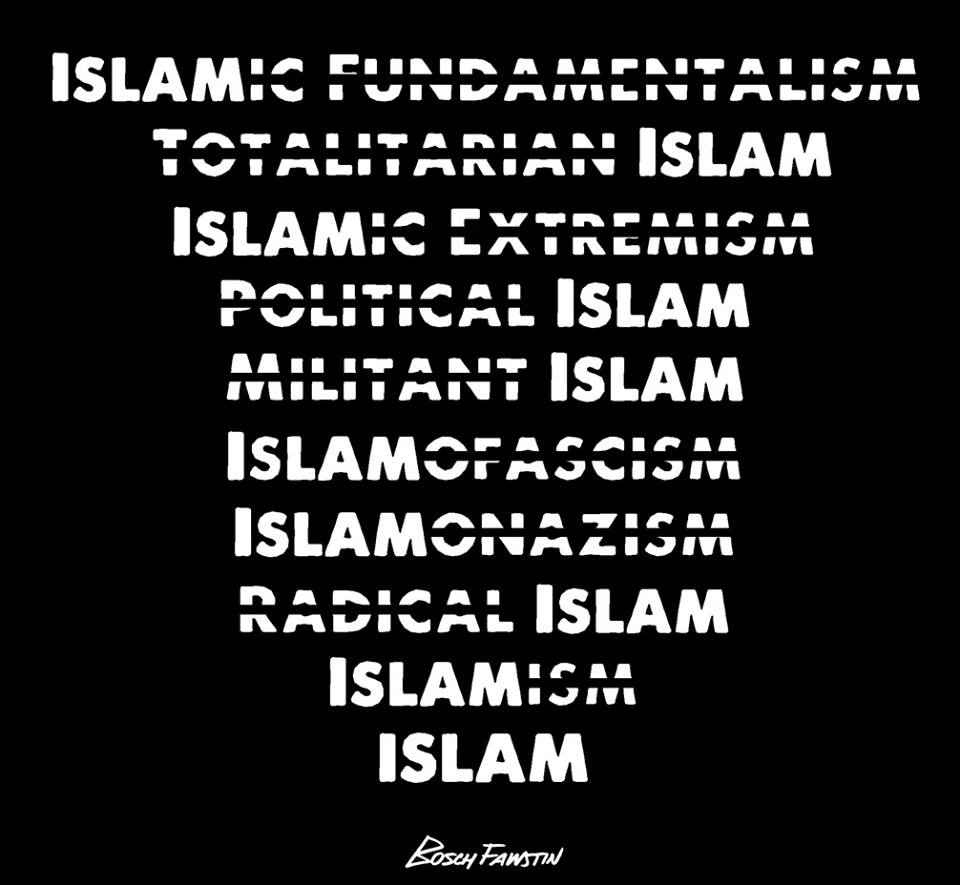 You fabricate a word that implies a terrorist/a non-compliant bad guy who really has nothing to do with “peaceful” Islam but accidentally happens to be a Muslim. BINGO!