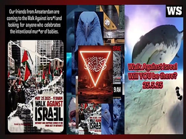 Local anti-Israel organizers post on social media, ‘Our friends from Amsterdam are coming to the Walk Against Israel and looking for anyone who celebrates the intentional murder of babies.’