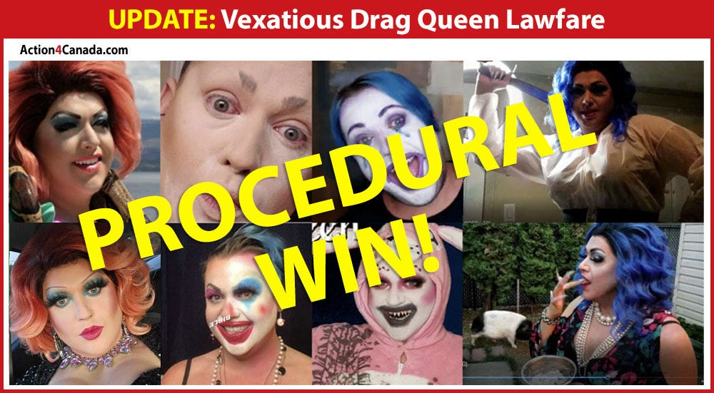 On May 6, 2025 Tyson Cook filed a further action, an application for an interlocutory injunction, that demanded Action4Canada be forced to remove all information regarding him from our website. Cook claims that the information is false, misleading and harming his reputation – however, the information in question was acquired directly from his YouTube channel and social media platforms. He also submitted an affidavit, which consisted of false and misleading information and claims. One such claim was that Action4Canada posted a collage of drag queens and pride parades that contained an image of him…when in fact the person in the image is American drag queen Lil Miss Hot Mess.